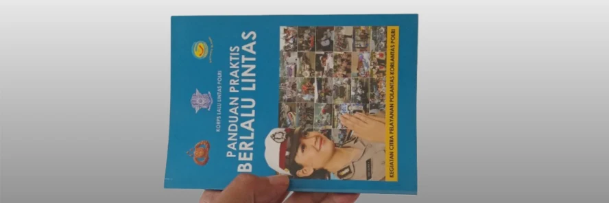 Foto Mbak Polwan Avvy Olivia A. tersenyum tipis, mengatupkan kedua telapak tangan, berlatar aneka kolase foto polisi bekerja, menghiasi sampul buklet Panduan Praktis Berlalu Lintas (PPBL). Ini buklet terbitan Korlantas Polri pada 2011, ketika warganet didera demam polwan ayu.