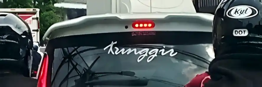 Salah satu tujuan orang memasang tulisan pada kaca belakang mobil adalah agar dibaca orang oleh lain. Isinya macam-macam, dari promosi sampai semboyan bahkan kutipan ayat suci. Tetapi kalau tulisannya “tunggir”, menurut Anda apa maksudnya ya?
