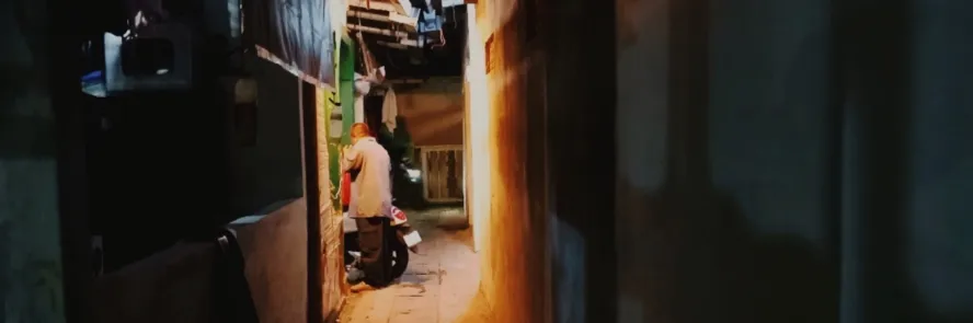 Tadi malam, dari jarak agak jauh, setelah saya berbelok dengan berjalan kaki menyusuri labirin permukiman padat itu, saya melihat separuh badan motor melintang menutupi gang. Lalu terdengar suara motor datang dari balik tikungan, sorot lampunya menyapa tembok.