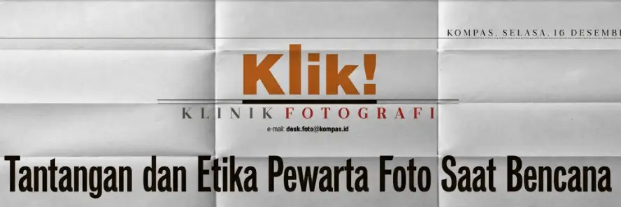 Hari ini (16/12/2025), editor foto Kompas Iwan Setiyawan menulis dalam rubrik Klinik Foto, “Tantangan dan Etika Pewarta Foto Saat Bencana“. Intro tulisan sangat mengena: