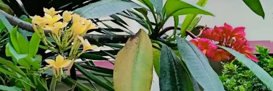 Karena dorongan impulsif saya jepret kemboja kuning dan merah di halaman tetangga. Ketika akan mengeposkan ke blog wagu ini, saya mencari tahu apakah pernah melakukannya. Ternyata pernah, pada 8 Juli 2023. Belum genap tiga tahun lalu. Artinya saya mulai pikun.