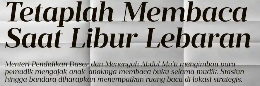 Berita koran Kompas (Rabu, 18/3/2027) ini menarik. Mendikdasmen Abdul Mu’ti mengajak anak-anak untuk tetap membaca selama libur Lebaran.
