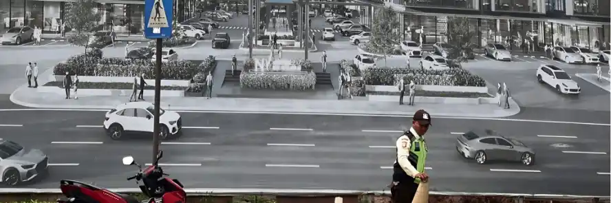 Sebelumnya, pada Juni 2025, Hendra juga memotret orang berlari dengan latar belakang mural proyek properti. Pagar proyek bangunan dengan gambar besar, berupa foto beneran maupun vektor, selalu sama: menyajikan proyeksi sugestif. Kelak akan demikian setelah proyek selesai. Namanya juga promosi untuk berjualan.